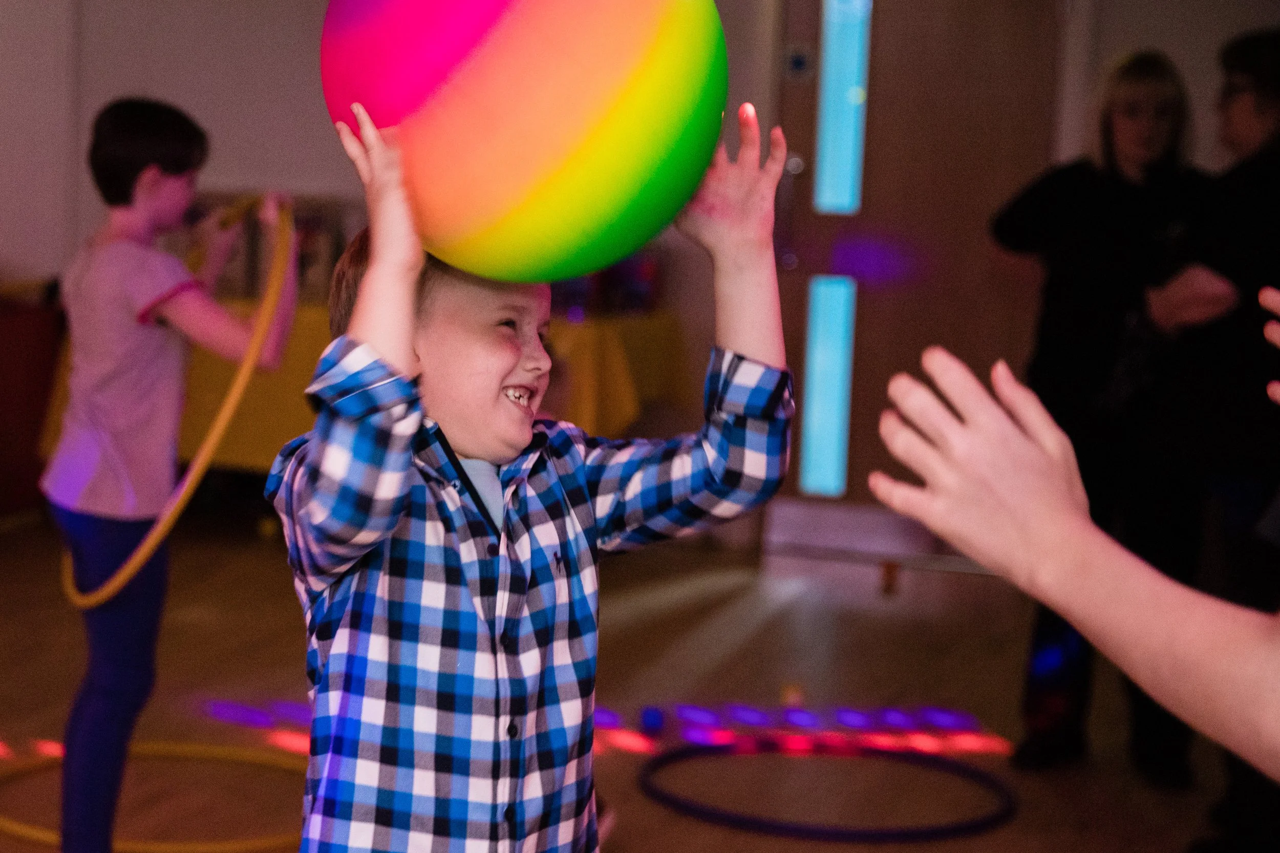 Traditional party games & musical movement with props, tailored to ages attending the event